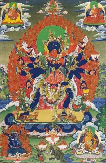 Représentées le plus souvent dans une étreinte sexuelle, ces divinités tantriques représentent les aspects purifiés de la nature humaine, particulièrement les aspects courroucés ou passionnés qui pourraient causer de grandes souffrances mais qui, s'ils sont correctement transformés par l'entraînement spirituel, peuvent conduire à la vraie sagesse et au bonheur.