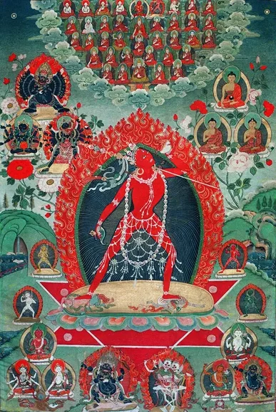 En conséquence, les bouddhistes associent le mont Kailash avec les divinités méditatives tantriques, Chakrasamvara et sa consoeur Vajrayogini (Dorje Pagmo).