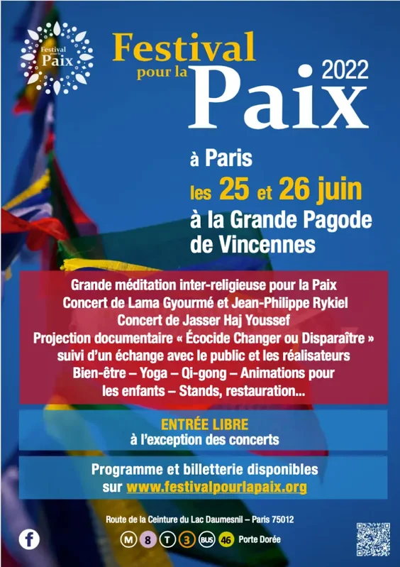 Et c'est là que nous comprenons que faire la paix avec soi même et la voie pour faire la paix avec le monde. Ces valeurs de vivre ensemble sont les valeurs promues par le Bouddhisme et notamment par le Festival pour la Paix qui est organisé à Paris par le temple tibétain Kagyu Dzong.